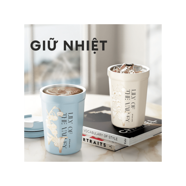 HGD1128: Ly Caphe giữ nhiệt Hoa Linh Lan GERM GE-23AW-K32 (Trắng xanh dương/Trắng kem 390ml)