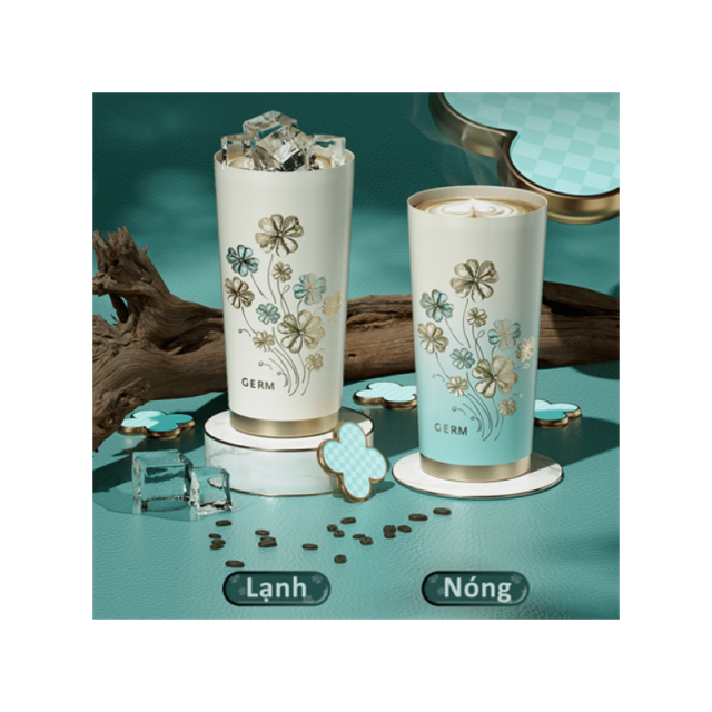 Thương hiệu và Bảo hành Thương hiệu: GERM; Mã sản phẩm: GE-24SS-DB96; Nơi sản xuất: Trung Quốc; Thời gian bảo hành: 12 tháng (áp dụng đối với lỗi giữ nhiệt, tỏa nhiệt ra thân bình, không bảo hành va đập, rơi vỡ).Thông tin Sản phẩmLy giữ nhiệt GERM GE-24SS-DB96 (390ml) là một lựa chọn lý tưởng cho các thức uống cá nhân như cà phê, trà, hoặc nước ép, với thiết kế nhỏ gọn và dễ dàng mang theo. Sản phẩm nổi bật với họa tiết Cỏ Bốn Lá (vàng Gold) trên nền màu Trắng hoặc Trắng-Xanh dương (tùy phiên bản). Ly có cấu trúc 7 lớp giữ nhiệt chắc chắn. Ruột ly sử dụng thép không gỉ S31603, một vật liệu cao cấp, chống ăn mòn và đảm bảo an toàn tuyệt đối. Thiết kế miệng ly rộng, hỗ trợ 3 cách uống khác nhau, mang lại sự linh hoạt tối đa cho người dùng. Đáy ly được trang bị lớp silicone chống trượt, tăng cường độ ổn định.Thiết kế: Mini, tiện dụng, họa tiết Cỏ Bốn Lá, có 3 cách uống. Chất liệu: Ruột trong Thép không gỉ S31603, Vỏ ngoài Thép không gỉ S304, Nắp Nhựa PP, Gioăng Cao su silicone. Kết cấu: 7 lớp giữ nhiệt.Tính năng Nổi bậtGiữ nóng/lạnh lâu (Nóng 6-9h, Lạnh 8-10h); Ruột ly Inox 316 cao cấp (an toàn y tế); Đáy silicone chống trượt; Hỗ trợ 3 cách uống.Công dụngGiữ nóng cà phê, trà hoặc giữ lạnh đồ uống mát lạnh, lý tưởng cho việc sử dụng hàng ngày, tại văn phòng hoặc khi di chuyển.Thông số Kỹ thuật Thương hiệu: GERM Model: GE-24SS-DB96 Dung tích: 390 ml Thời gian giữ nóng: 6 - 9 giờ Thời gian giữ lạnh: 8 - 10 giờ Kích thước: Đường kính đáy 6.8 cm - Cao 16 cm Trọng lượng: 375 gram Các thông số khác (Công suất/Điện áp/CRI/Tuổi thọ...): Không áp dụng (Là ly giữ nhiệt). Xuất xứ: Trung QuốcLưu ý: Sản phẩm được giao ngẫu nhiên, không hỗ trợ chọn màu hoặc phân loại cụ thể