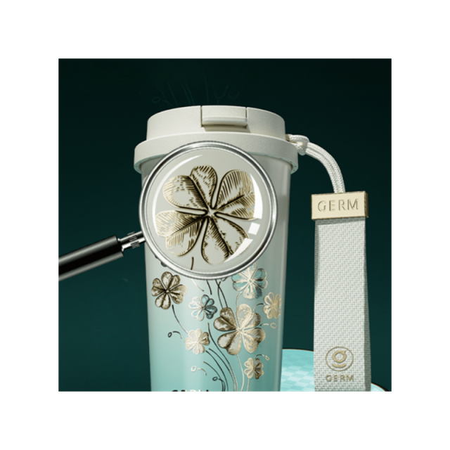 HGD1126: Ly Caphe giữ nhiệt Cỏ Bốn Lá vàng Gold xanh dương GERM GE-24SS-DB96 (Trắng xanh dương /tr ắ...